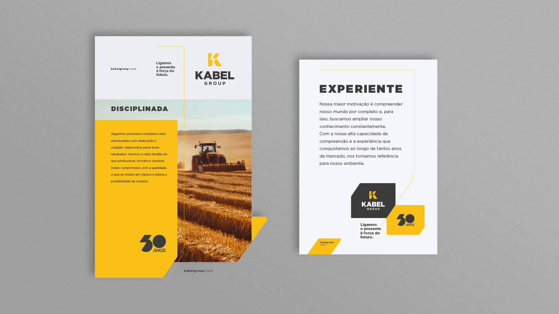 Além do desenho de toda a expressão visual da marca, criamos também o selo de 50 anos da empresa, que veio junto com a decisão de internacionalização e aniversário.